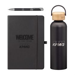 The Starter Onboarding Set is the perfect way to welcome new hires with thoughtfully selected essentials. It features our best-selling Greenstone Bottle for all-day hydration, the stylish Eccolo Cool Journal for ideas and notes, and our reliable Clicker Pen for effortless writing. Designed to combine practicality and style, this set ensures new team members feel valued from day one. Branded and beautifully packaged, it’s the ideal introduction to your company culture.